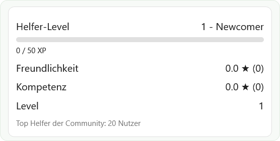 Dein Helfer-Level zeigt dir wie viel du schon für die Gemeinschaft gegeben hast. Erhalte "Erfahrungspunkte" durch das Abschließen von Hilfsgesuchen und steige in deinem Helfer-Level auf.