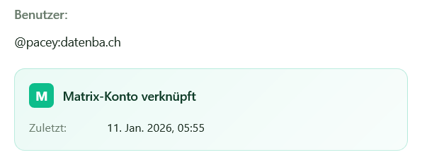 Darunter seht ihr den Status der SSO Verbindung über Matrix - dies ist nur relevant für euch wenn ihr die Registrierung bzw. das anmelden über Matrix verwendet. Sobald euer Konto erfolgreich mit eurem Matrix Account verknüpft ist solltet ihr hier die Information über die aktive Verbindung sehen.